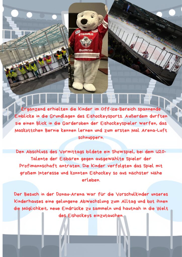 Aktion der Jungeisbären in der Donau-Arena Beitrag veröffentlicht:13. Januar 2026 Das könnte dir auch gefallen Erntedank im Märchenhaus 12. Oktober 2023 neuer Elternbeirat und Kinderrat im Märchenhaus 5. November 2025 ADAC-Verkehrstraining für die Vorschulkinder 9. April 2025
